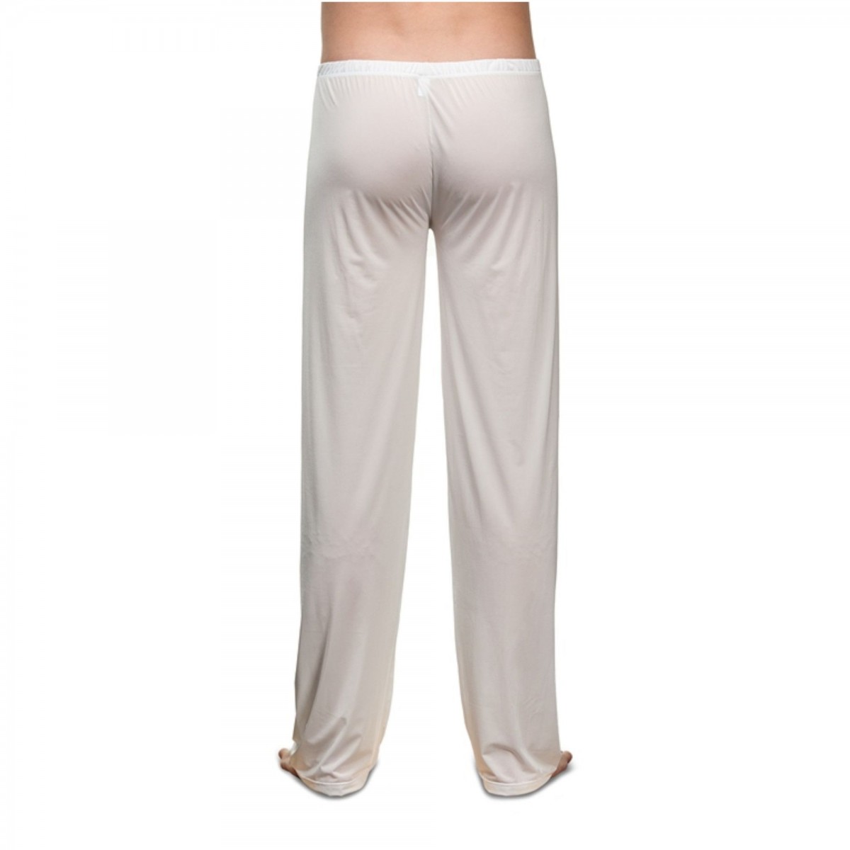 Белые полупрозрачные мужские брюки.