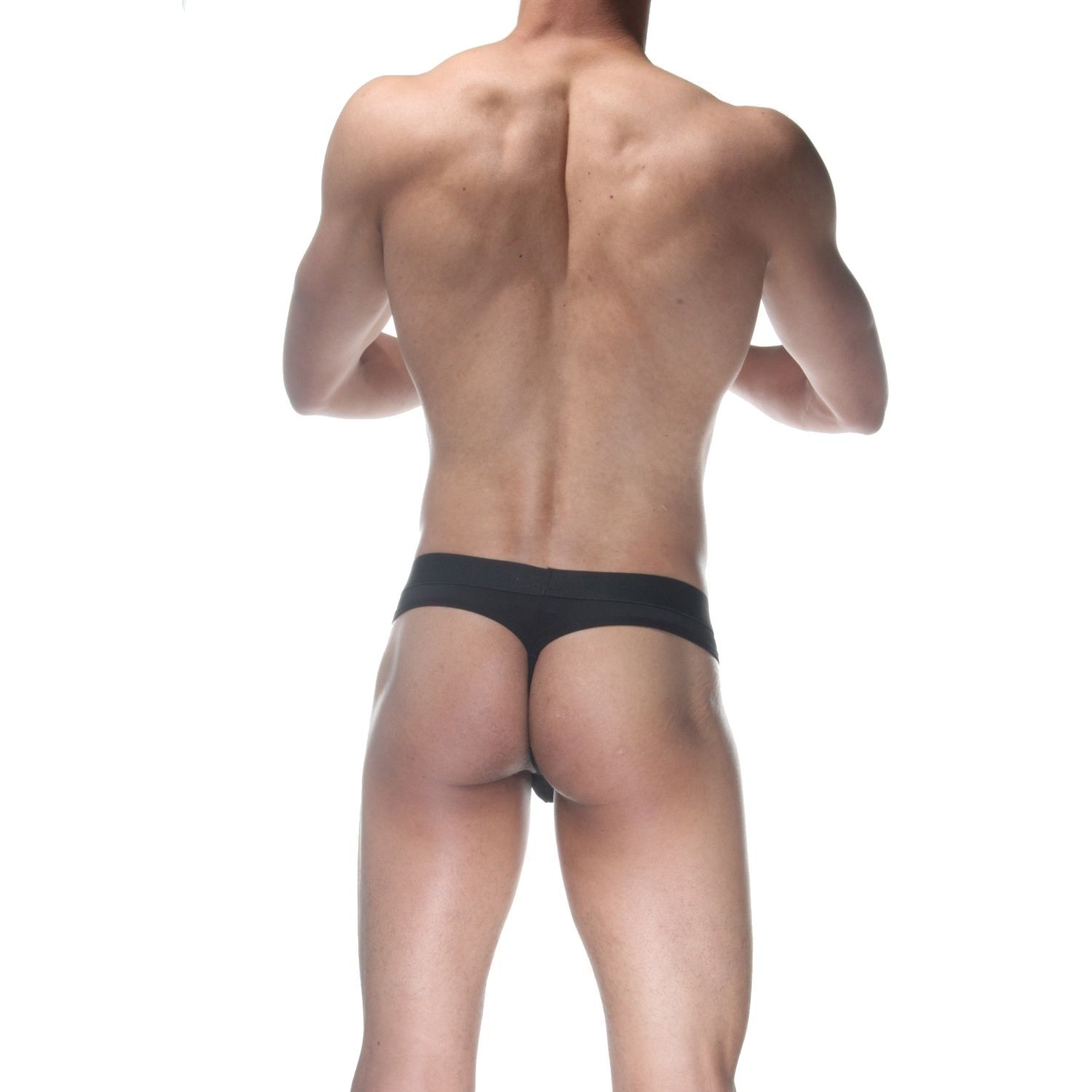 Черные мужские трусы-стринги с широкой резинкой.