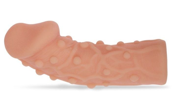 Насадка очень эластичная, имеет узор выпуклые венки и пупырышки по всей поверхности для стимуляции эрогенных зон партнера, увеличивает толщину головки и ствола пениса.