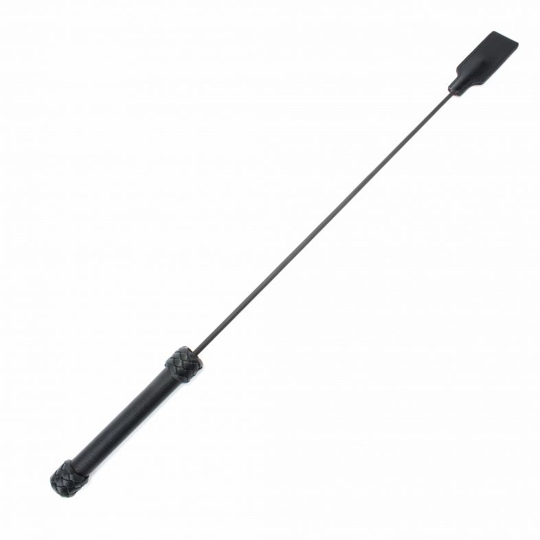 Стек сделан из прочного сердечника с оплеткой из кожи. Наконечник в виде хлопушки из кожи для осуществления ударов. Также на ручке присутствует кожаная петля, которая позволяет закрепить стек при проведении наказания партнёра. Девайс отлично подходит для БДСМ игр. Мягкая и гибкая конструкция позволяет избежать повреждений тела даже при сильных ударах. Хлопушка сделана из подшитой кожи, рукоятка стека жёсткая, обшита кожей. Размеры хлопушки - 11 х 4 см.