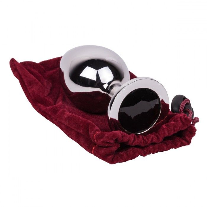 Гладкий большой плаг из отполированной до блеска стали с кристаллом иссиня-черного цвета в основании. Металл - материал с большой теплопроводностью, сначала он будет прохладным, но быстро нагреется до температуры вашего тела. Стальные игрушки можно нагревать или охлаждать с помощью воды.