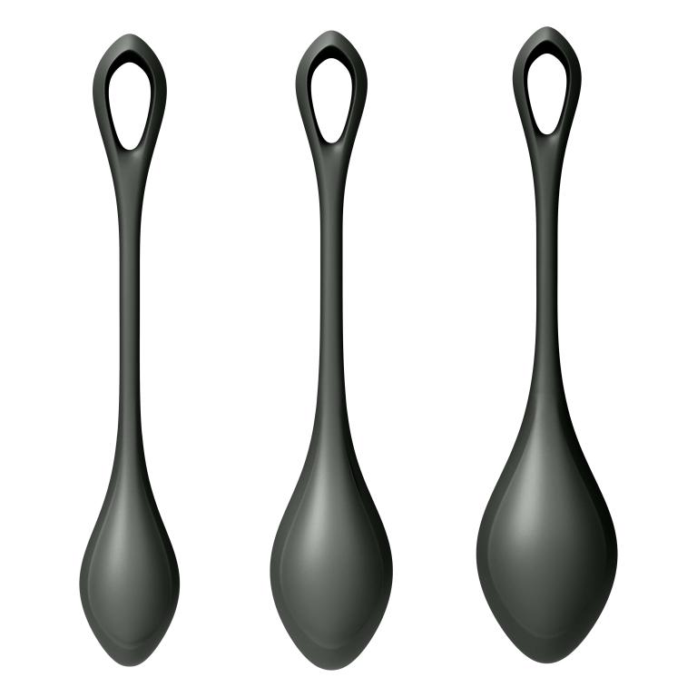 Yoni Power 2 – набор из трех одиночных шариков разного веса. Идеальные вагинальные тренажеры для начинающих, чтобы повысить тонус интимных мышц и снизить вероятность болезней мочеиспускательной системы. Удобная петелька позволяет легко извлечь тренажер при необходимости в любой момент. Для комфортности введения и получения максимально приятных ощущений рекомендуется использовать смазку на водной основе или гибрид. Общая длина - 12, 13 и 14 см. Диаметр - 2, 2,5 и 3 см. Длина петельки - 8 см. Вес - 21, 45 и 75 гр.