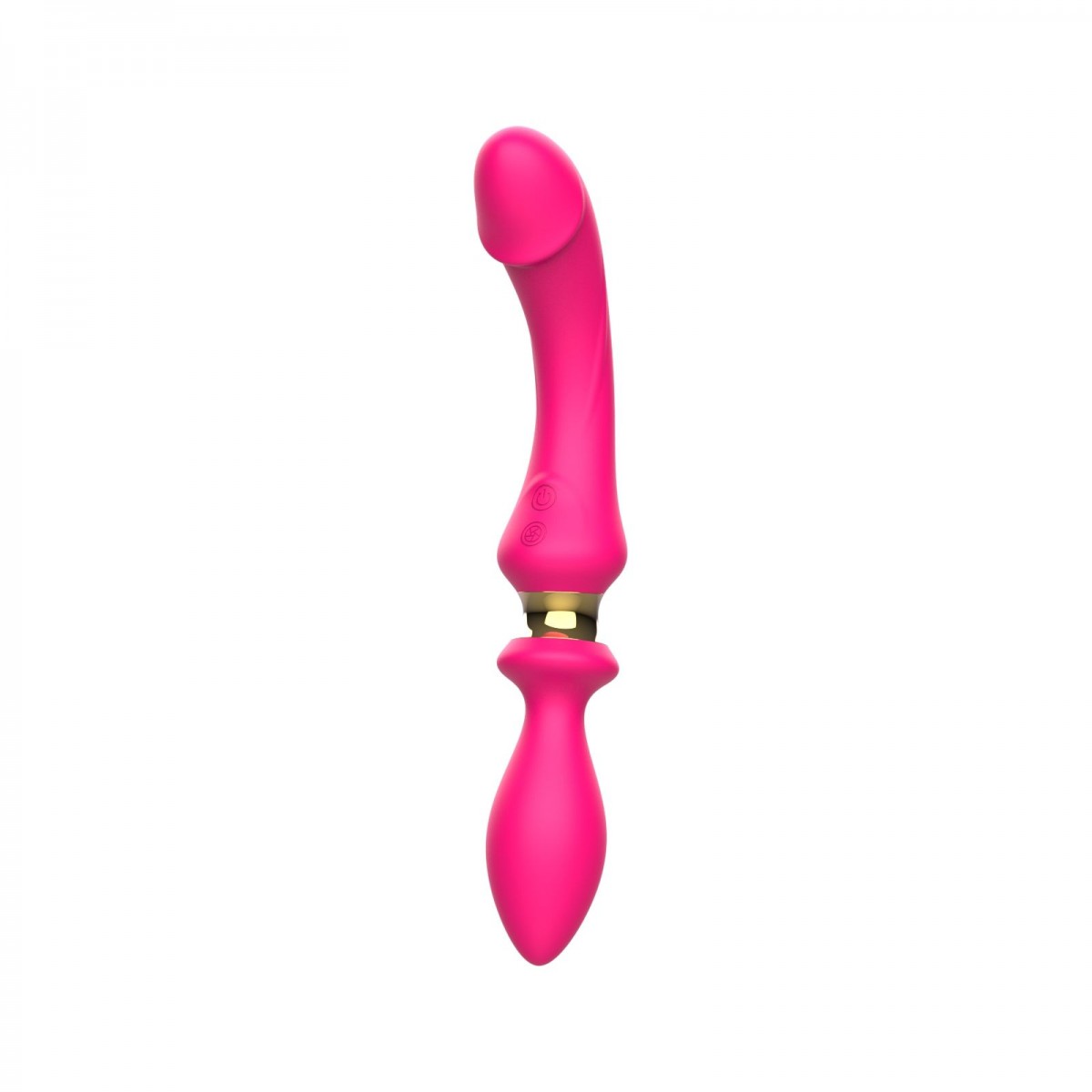 Розовый двусторонний вибромассажёр. Может использоваться обоими партнёрами - для вагинальной или анальной стимуляции. Имеет 10 режимов вибрации. Рабочая длина большого отростка - 12,8 см, диаметр - 3,8 см. Рабочая длина малого отростка - 9,1 см, диаметр - 3,7 см.