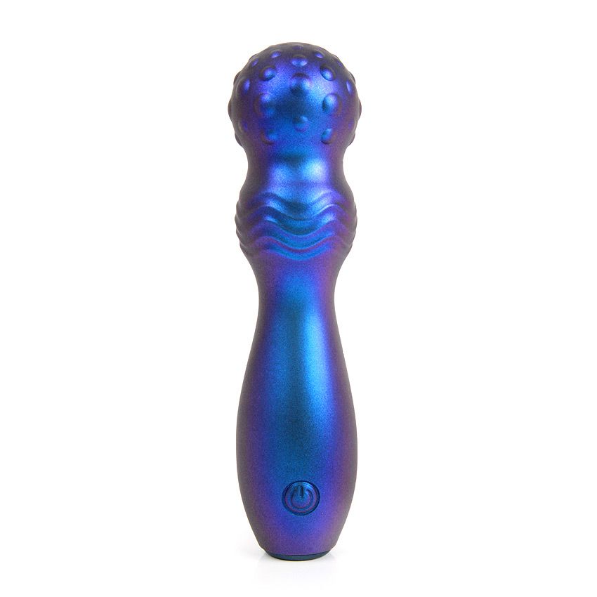 Синий фигурный вибромассажер с шаровидной головкой. 10 режимов вибрации. Перезаряжаемый.